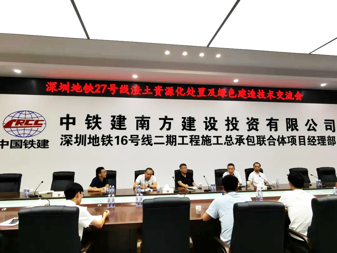 5月8日,中國(guó)鐵建南方投資黨委副書記、紀(jì)委書記姜立國(guó)、27號(hào)線指揮部總工程師董志;廣東省建科院創(chuàng)新研究院劉遠(yuǎn)亮博士、深圳市中科綠建環(huán)??偨?jīng)理呂高楊及27號(hào)線各工程局有關(guān)管理人員參加了渣土資源化處置及綠色建造技術(shù)交流。